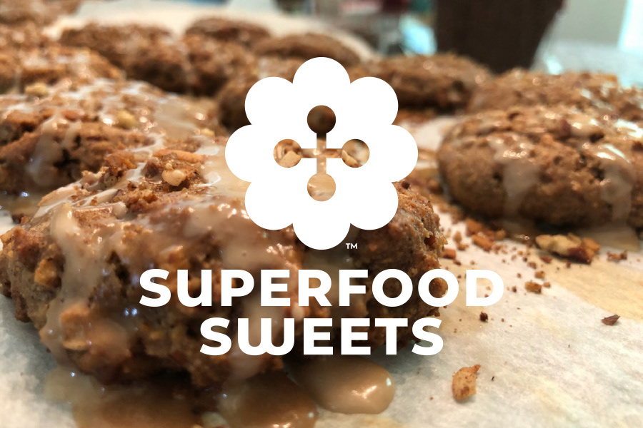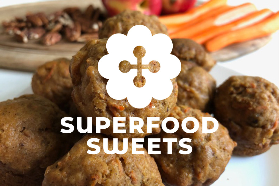 The bright, friendly logo combines forms that suggest a flower, a muffin, a cross and a button—all images of a happy and healthy life supported by diets that limit inflammatory ingredients. Using a flexible palette that reflects changing menu offerings, the colors of the web site change with each season of the year.