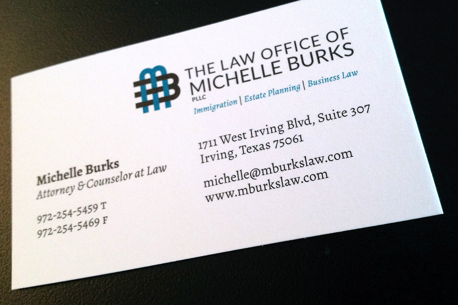 The combined strength and interdependent trust of the client-counsel relationship is woven together in this mark for attorney Michelle Burks.